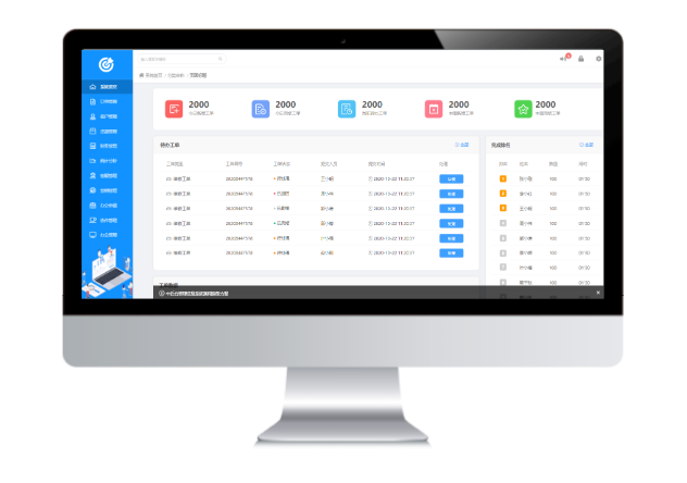 该功能菜单提供系统用户数据的统计功能,包括用户数量、任务完成率和工作时长等统计分析。